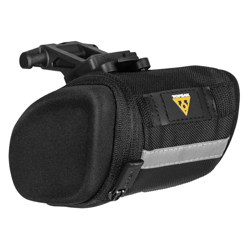 The Topeak Sidekick Wedge Pack Saddle Bag is a new innovation in wedge pack construction, combining molded side panels with flexible 600 denier fabric to form a semi rigid, weather resistant saddle bag. A large, side-opening panel provides easy access to all your under saddle gear. Internal mesh pockets keep keys and small tools in place while riding. QuickClick® compatible for fast, easy transfer between bikes.Topeak Sidekick Wedge Pack Saddle Bag FeaturesAdded Features: 3M™ reflective strip, Safety light clip (3M™ is a registered trademark of 3M Company).Bag Attachment: QuickClick® (F25)Insulation: Rigid EVA foamMaterial: 600 denierSeatpost Diameter: Fits 25.4 - 34.9 mm (Medium)Topeak Sidekick Wedge Pack Saddle Bag Capacity0.5 L / 30 ci (Small)0.75 L / 45 ci (Medium)Topeak Sidekick Wedge Pack Saddle Bag Size14 x 11 x 9.5 cm / 5.5” x 4.3” x 3.7” (Small)18 x 11.5 x 11 cm / 7.1” x 4.5” x 4.3” (Medium)Topeak Sidekick Wedge Pack Saddle Bag Weight110 g / 3.87 oz (Small)190 g / 6.69 oz (Medium)