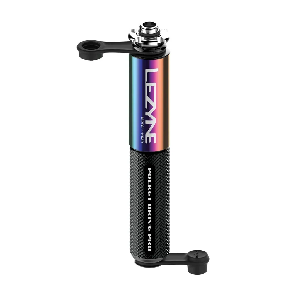 The Lezyne Pocket Drive Pro Hand Pump is an amazingly compact and lightweight hand pump featuring plenty of pumping efficiency, accentuating the pump is its vibrant Neo Metallic handle. It’s fully constructed from durable CNC machined aluminium and has a barrel that’s lightly knurled for slip resistant operation.With its overlapping handle and integrated ABS Flex Hose, the Lezyne Pocket Drive Pro Hand Pump offers performance unmatched for its size. The hose also includes an integrated valve core tool. The pump is Presta and Schrader valve compatible, and it’s completely rebuildable for continued use at a high level. It also comes with an elegantly machined aluminium frame mount.Lezyne Pocket Drive Pro Hand Pump FeaturesCompact and lightweight.Vibrant Neo Metallic handle.CNC Machined Aluminium.Lightly knurled barrel.Integrated ABS Flex Hose.Integrated valve core tool.Presta and Schrader compatible.Completely rebuildable.Lezyne Pocket Drive Pro Hand Pump SpecificationsMax Pressure: 160 PSI (11 BAR).Weight: 98g.Length: 140mm.