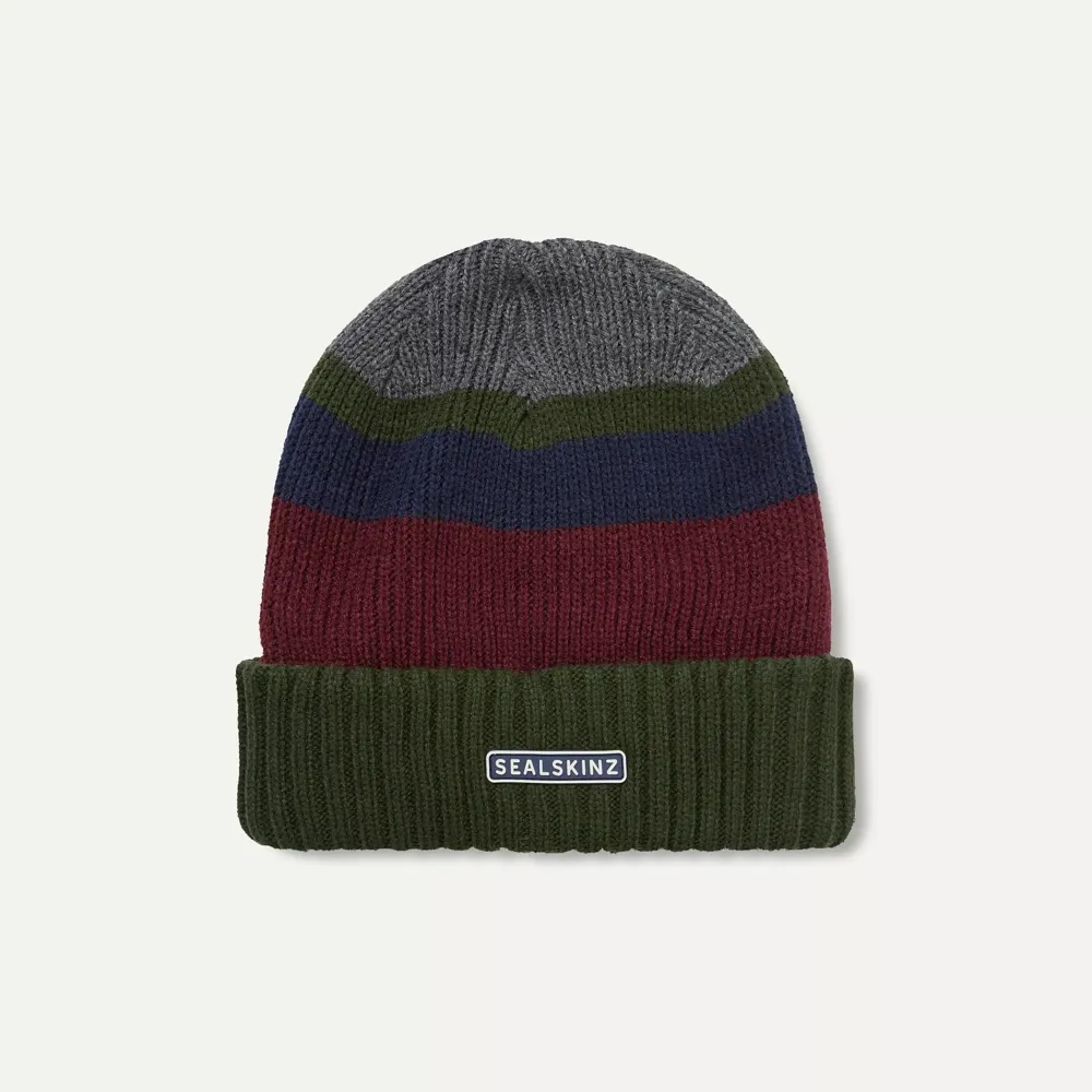 Leisure Lakes Bikes SealSkinz Cromer Waterproof Cold Weather Roll Cuff Striped Beanie Olive