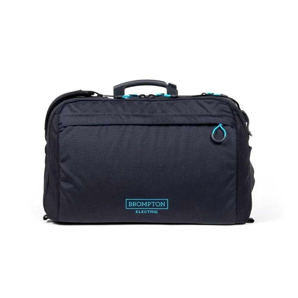 Brompton Electriclarge bag - with frameAlso known as the Brompton Electric City Bag - this is a bag specifically for the Brompton Electric. You probably want this bag if you bought your Brompton Electric with the standard bag and now want to carry moreColour: Black, with blue Brompton Electric logo, and bright electric blue interiorCapacity: 20LSpecifically designed to house the battery electric battery (not included) along with other items such as a laptopThe clue is in the name - Brompton Electric Large Bag - but just in case that wasn't clear enough, the is biggerthan the small Brompton electric bagNote: Battery not includedHere at Brilliant Bikes - we recommend this as the best option for your Brompton Electric - it will allow you to carry more essentials (laptop / waterproofs / lunch) than the small bagBrompton Electric bag - large - features:Two rear pockets:We found these about the right size for carrying a water bottle or bottle of beer (in each of the two pockets)Rain resistantcover:The rain resistant cover is neatly hidden away in its own pocketIt's attached to the bagSimply pull out, and unfold to cover the bagIt's a hi-viz yellow colour - for daytime visibilityThere is a also reflective strip across the cover - for night time visibility to other road trafficAdjustable carry strap - which folds neatly into its own pocketZip up pocket on front - about the right size for an iPadComputer sleeve on the insideReasonably large storageConnector hole for USB connected device | South Downs Bikes is a renowned bicycle retailer in the heart of the South Downs. We embody the community spirit of cycling by going the extra mile for our customers and providing a wide range of products and services, from the just getting going rider to the experienced downhill racer. We pride ourselves on customer service and all our enthusiastic staff undertake the highest levels of product training, ensuring you leave with a smile on your face, ready to ride your next bike. Whilst we strive for perfection, like all growing businesses, we may sometimes make mistakes - so if for any reason you’ve found a problem with any of our services or products, please drop us an email to info@southdownsbikes.com and we’ll address it immediately.